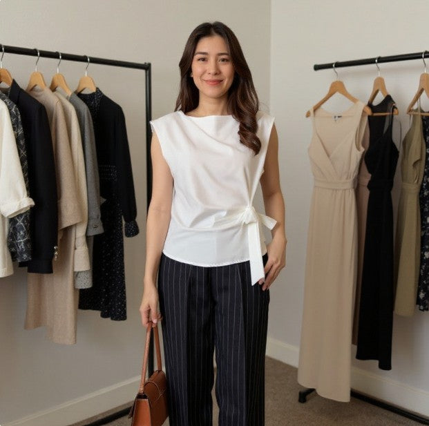 Meet your new go-to: the Shiloh Top. Soft fabric, classy drape, and a stylish side knot that instantly upgrades any outfit. Perfect for office, brunch, or a night out. Simple, elegant, timeless.